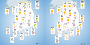 [뉴스클레임]찬 대륙고기압의 영향으로 전국 기온이 평년보다 크게 낮아지면서 21일 화요일은 급격한 기온 변화와 강풍을 동반한 늦가을 추위에 직면하겠습니다.특히 북쪽에서 유입되는 찬 공기와 강하게 부는 바람의 영향으로 체감 온도는 기온보다 더욱 낮겠습니다.기상청 일기에보에 따르면 21일 아침 최저기온은 1도에서 14도, 낮 최고기온은 14도에서 20도 분포를 보이면서 종일 쌀쌀하겠습니다.지역별 아침 최저기온은 서울 7도, 인천 9도, 춘천 5도, 대전 6도, 광주 8도, 부산 11도, 제주 14도 등입니다. 낮 최고기온은 서울 18도