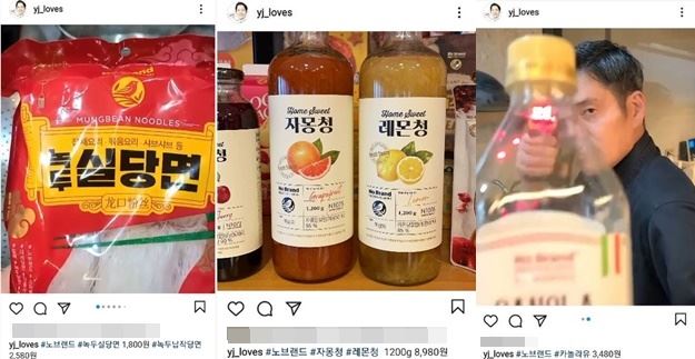 전날에는 "#노브랜드 #자몽청 #레몽청 1200g 8,980원"이라는 글과 제품 사진을 올렸다.