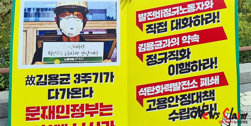 민주노총 공공운수노조는 31일 ‘고(故)김용균 3주기 100일 투쟁 돌입 기자회견’을 열고 “문재인 정부는 발전 비정규직 정규직 전환 약속을 지켜야 한다”고 촉구했다. 이와 함께 내달 2일 ‘내가 김용균이다, 발전비정규직 총력투쟁 공공운수노조 결의대회’를 개최할 것이라고 밝혔다.