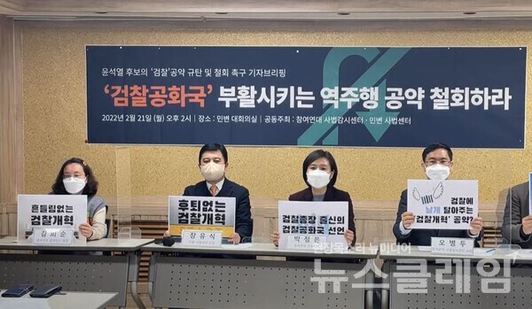 참여연대 사법감시센터, 민주사회를 위한 변호사모임 사법센터가 윤석열 국민의힘 대선후보의 검찰개혁 관련 공약 철회를 촉구하고 나섰다.