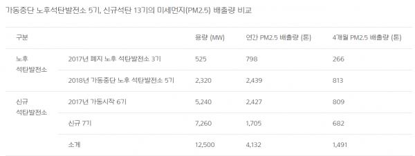 2017년에 폐지된 노후석탄발전소 3기(영동1호기, 서천 1,2호기)로 인해 같은 기간 동안 266톤이 줄어든 것을 감안해도 미세먼지 총량은 늘어난다.