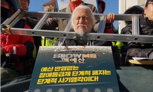 지난해 연말, 세계 인권의 날에 장애인들이 성공회 대성당에서 집결했다. 문재인 대통령을 만나고 장애인 등급제 진짜 폐지를 위해선 예산증액이 우선돼야 한다는 주장을 하기 위해서였다. 장애인들은 성공회 대성당 초입부터 난관에 봉착했다. 경찰들이 기념식이 열리는 성공회 성당을 막고 있었기 때문이다. 장외 투쟁을 진행했다. 여차하면 경찰벽을 뚫고 기념식장으로 난입할 계획도 짰다. 그러나 몸이 불편한 이들이 휠체어를 무기삼아 할 수 있는 건 차디찬 바닥에 드러눕는 게 전부였다. 경찰들은 휠체어에서 굴러 떨어진 장애인들을 들어 차도로 내던졌다. 이런 투쟁은 기념식이 끝날 때까지도 이어졌다.