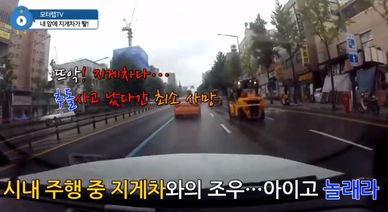 다만 갑작스런 차선 변경에 하마터면 추돌사고까지 날 뻔했습니다. 그만큼 지게차를 보고 여러 운전자들이 놀랬다는 반증입니다.