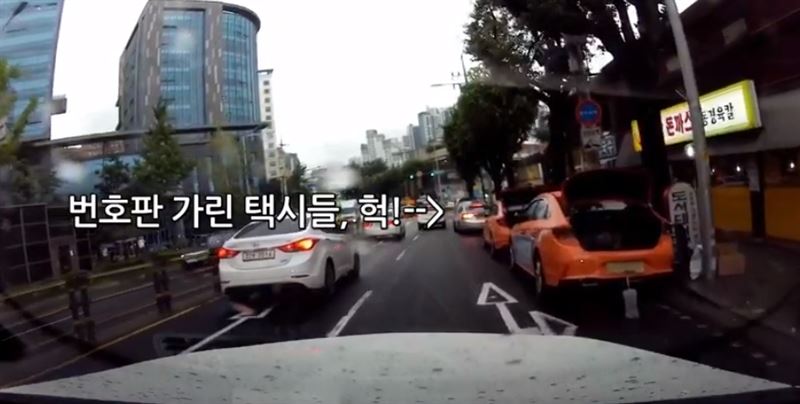한푼이라도 더 벌려고 뛰어다니시는 기사님들은 밥시간을 놓쳐 영상에서 보시는 바와 같이 트렁크 문을 올리고, 번호판을 가린채 주정차를 해놨습니다.